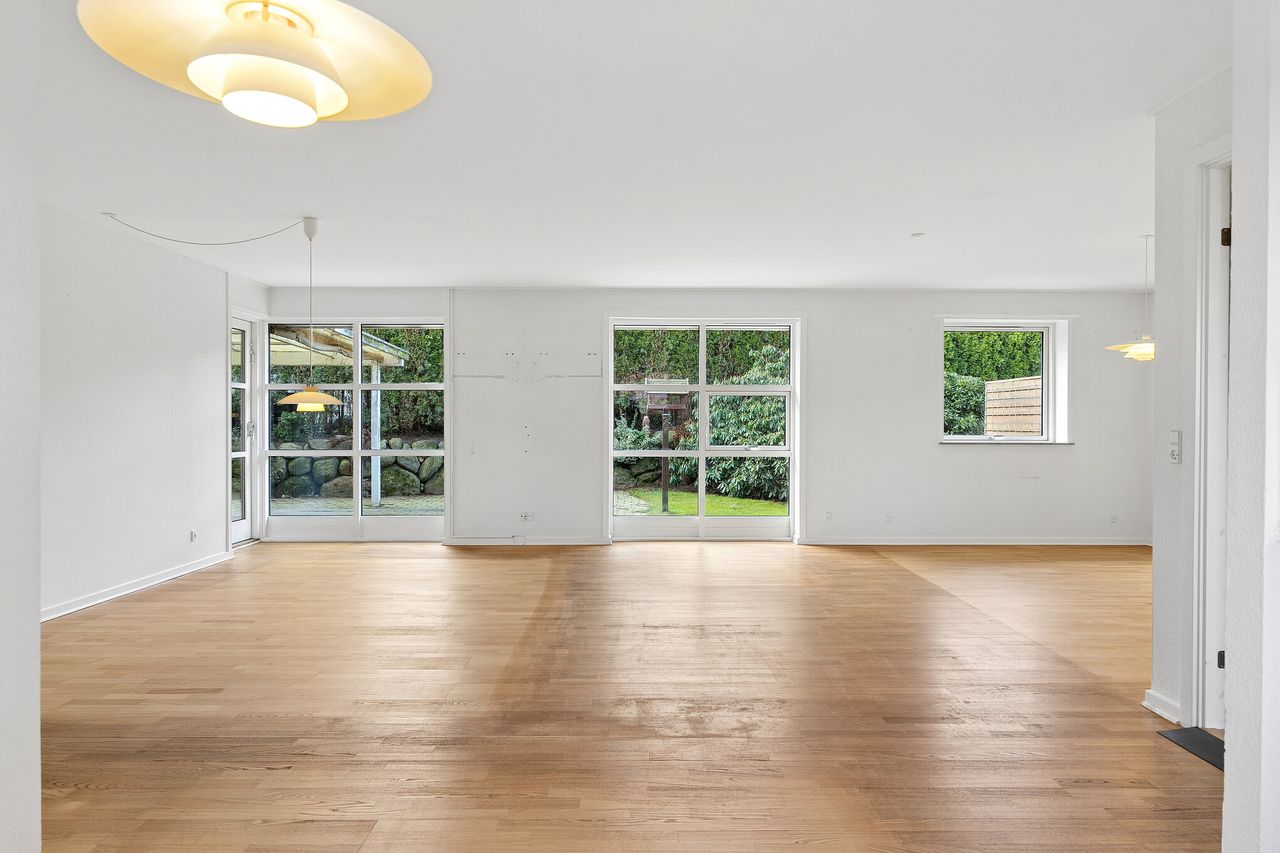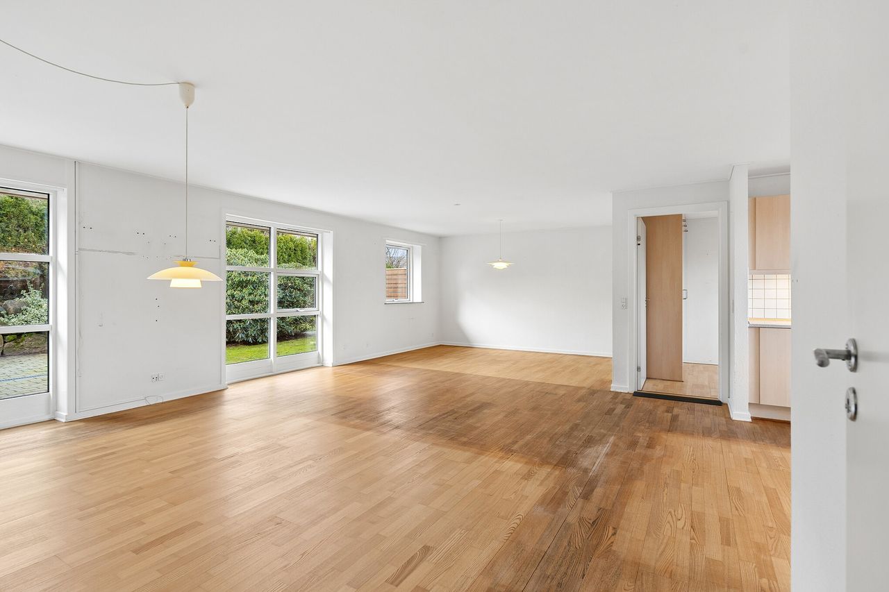 Indretningen fremstår lys og funktionel med en god planløsning, der giver optimale rammer for både parret, den lille familie eller seniorer, som ønsker en nem og overskuelig bolig.